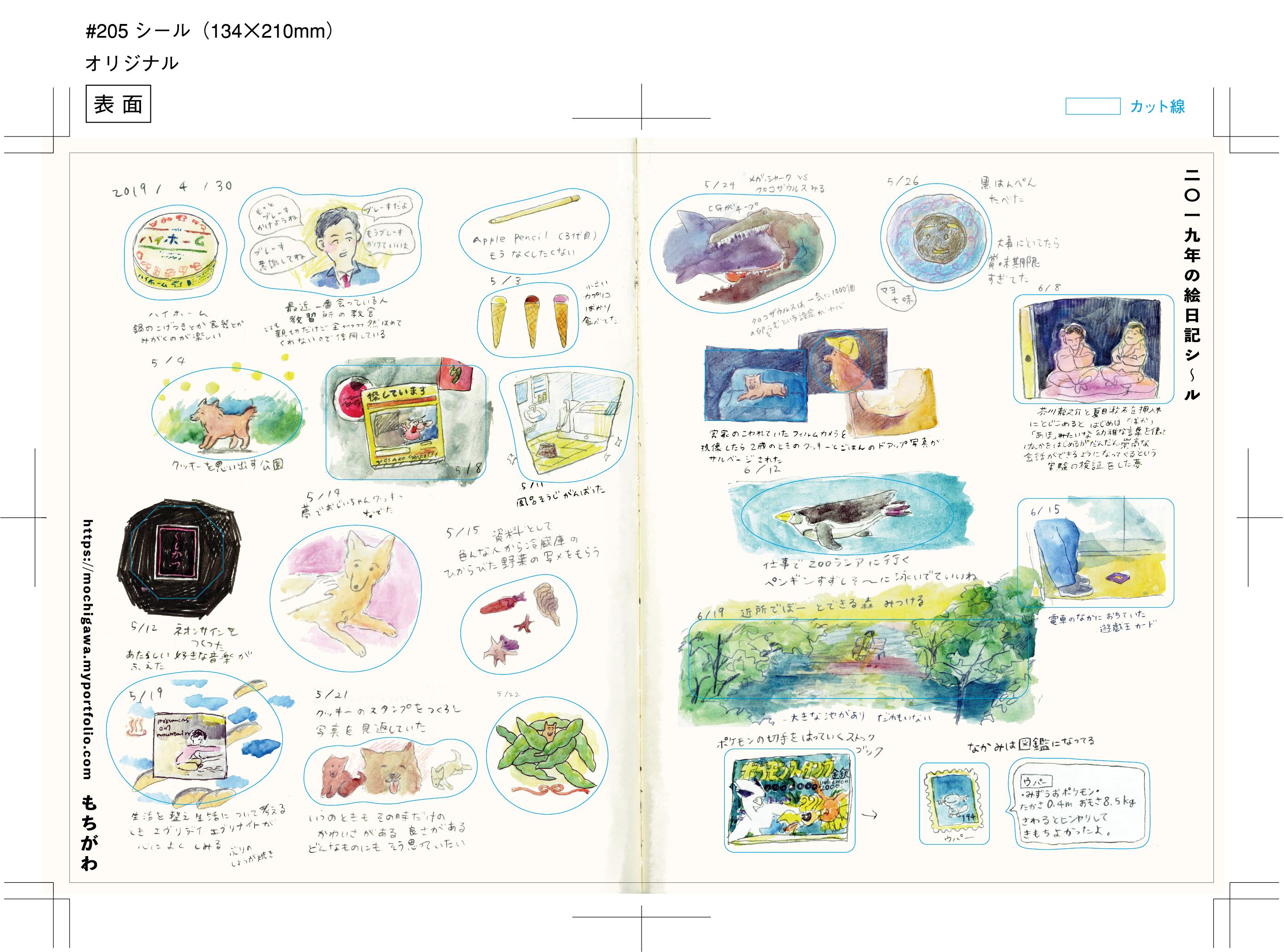 2019年の絵日記の一部をシ〜ルにしました。